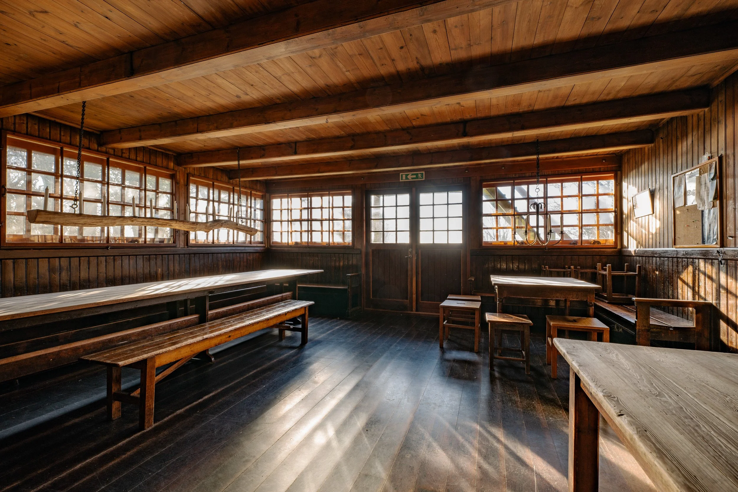 Når mørket falder på, og vinden suser i træerne udenfor, samles lejrens gæster i pejsestuens varme skær. Flammerne knitrer i brændeovnen, og skyggerne danser på væggene. Her fortælles historier, spilles spil og nydes fællesskabet i den hyggelige atmosfære. Stearinlysene kaster et blødt lys over det lange egetræsbord, mens duften af bål og natur blander sig i luften. Pejsestuen er et sted, hvor tiden står stille, og hvor roen og nærværet skaber uforglemmelige minder.