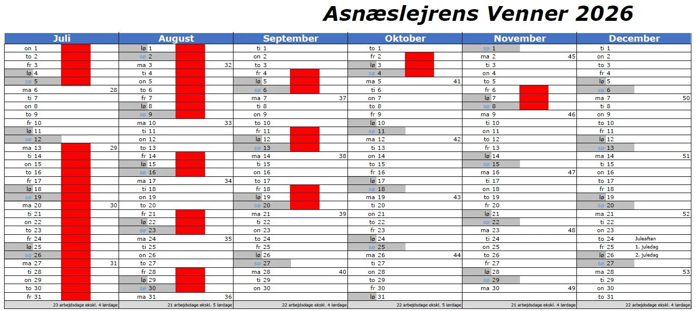 Har du nogen spørgsmål eller ønsker du at booke lejren, så skriv endeligt til os. Husk du får nogle fordele i forhold til booking hvad du er medlem af foreningen Asnæslejrens venner.